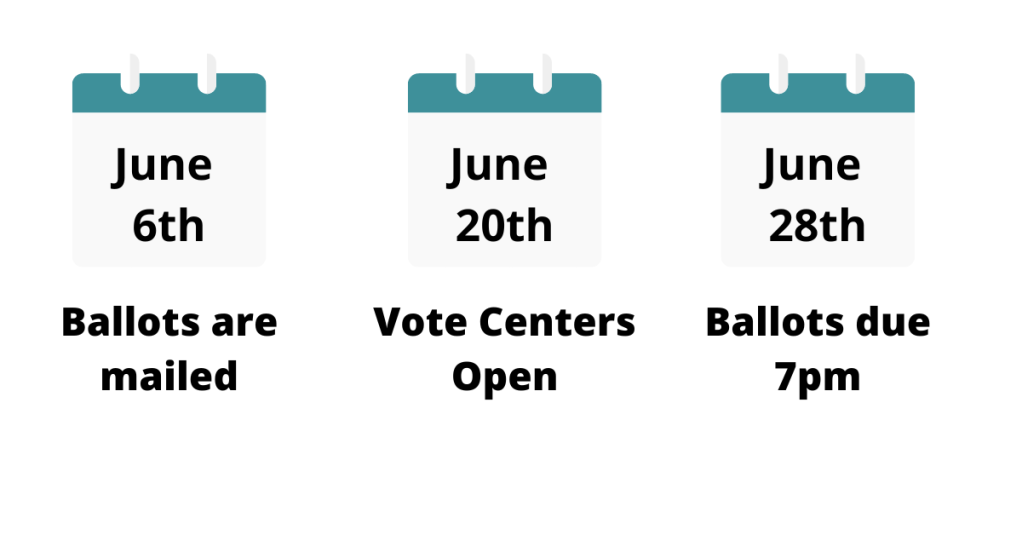The June 28th Primary Election is just around the corner! Make sure to return your ballot by mail, drop box or vote in person by June 28th at 7pm!